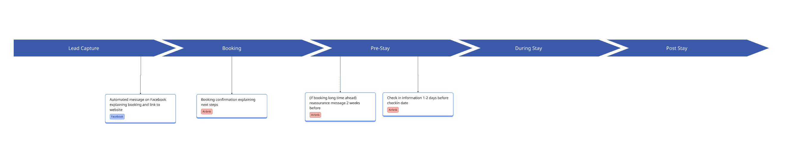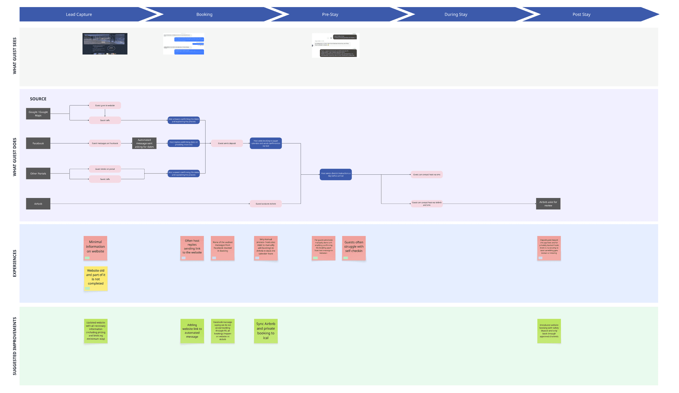With the discovery insights validated, the next step was to clearly define the structure of the guest journey and identify where it was breaking down for both guests and the property owner.