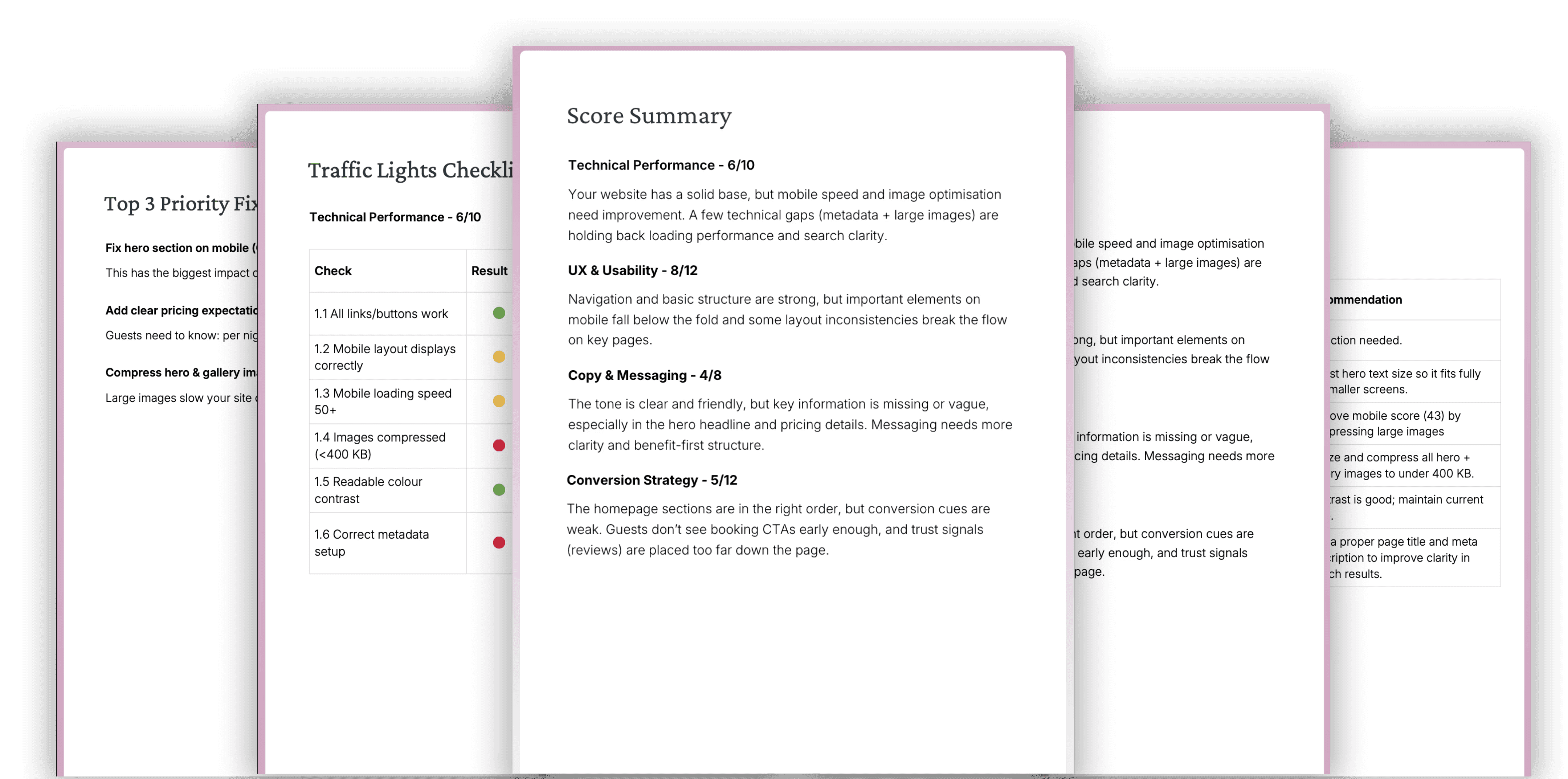 I review your website, booking setup, and guest journey, using research, audits, and mystery shopping where relevant.